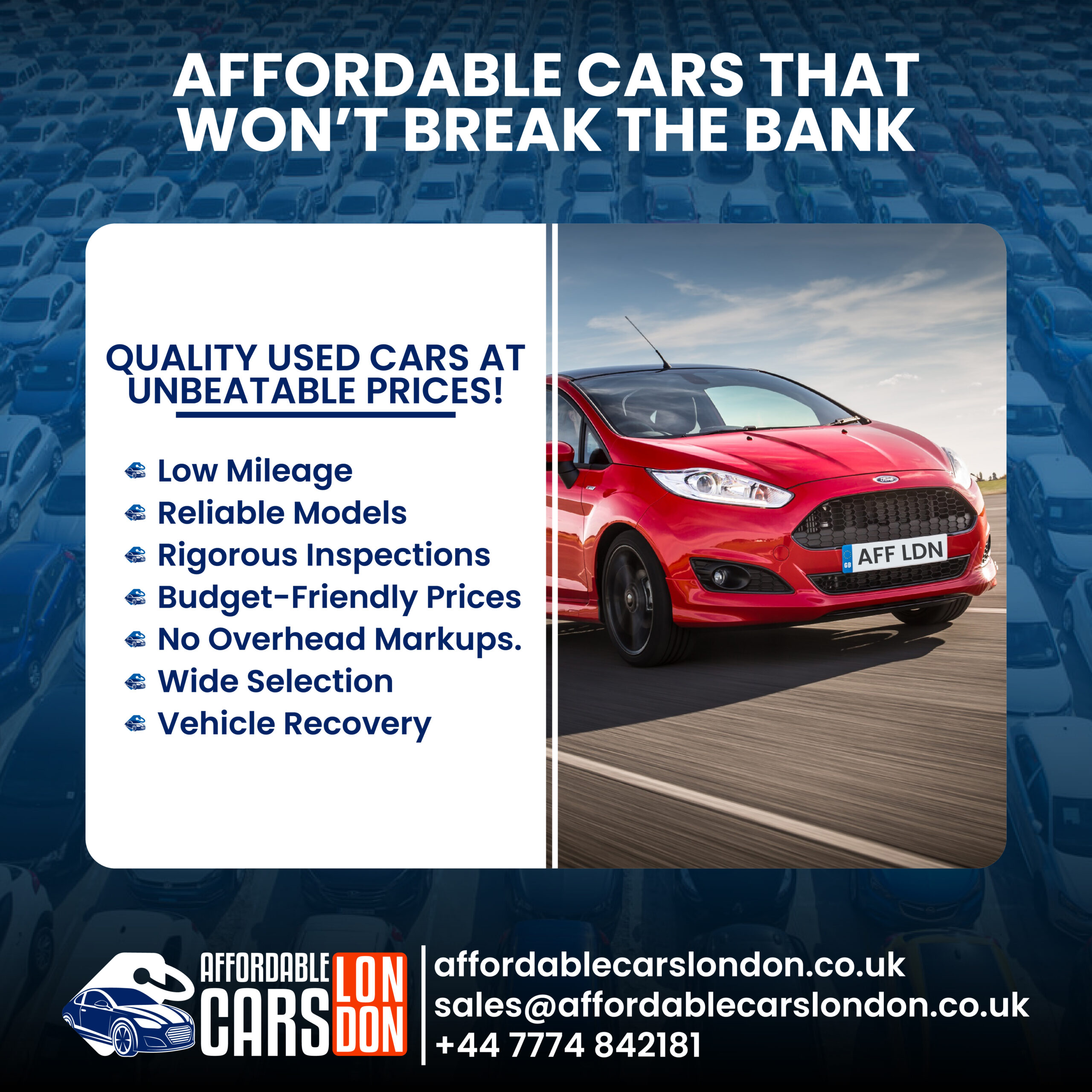 Various Designs for the social media pages of Affordable Cars London Ltd to help boost reach and Sales.