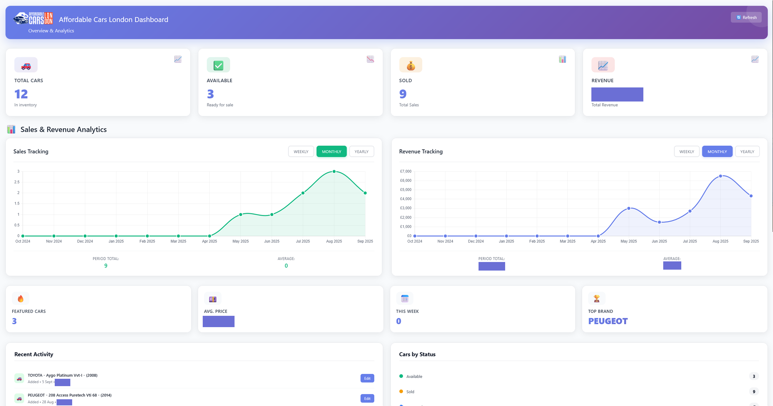 This is a fully functional website for Affordable Cars London LTD. The site is an online point of access for the business to potential customers. This was built on wordpress and has custom plugins to help with the listing and managing of cars. The custom plugin helps with accurate listings by getting the Car data directly from The DVLA. Also included in this is a Dashboard, which serves as a complete overview of the business and an Invoicing system.